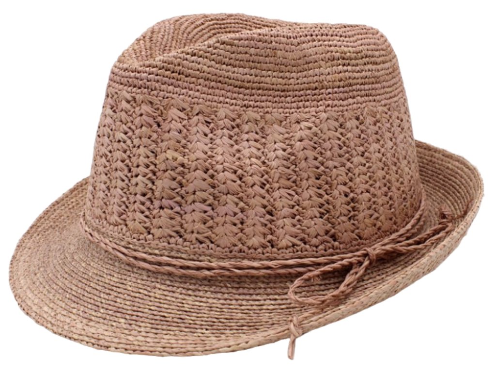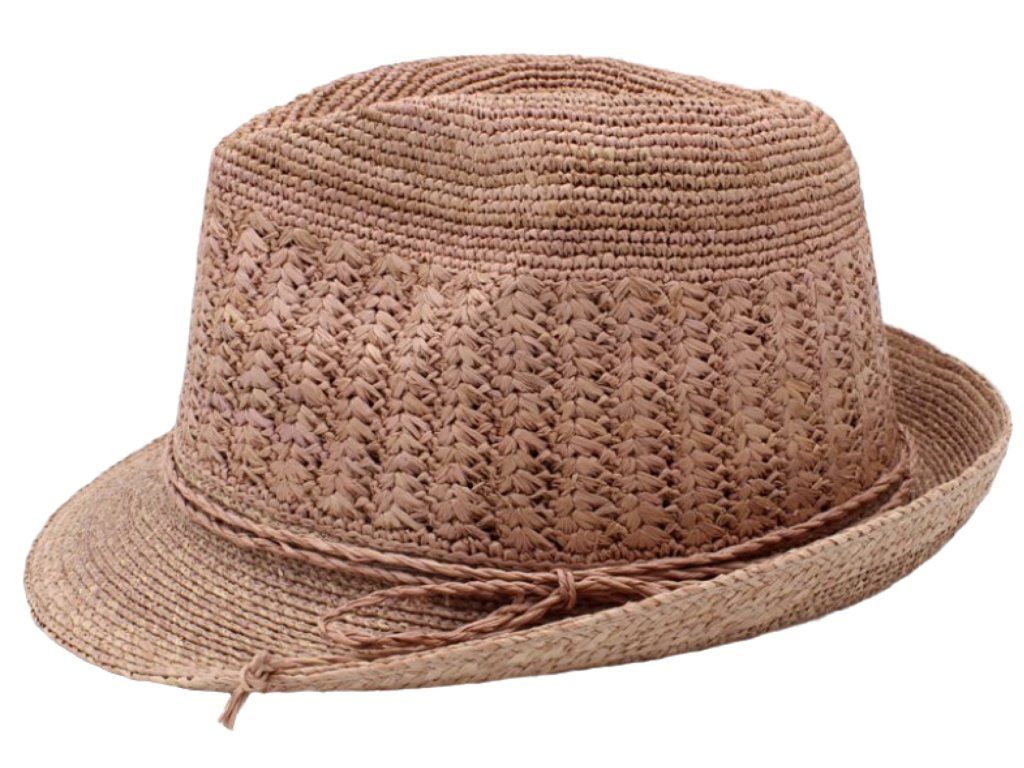 Trilby Raffia - slamený klobúk crochet ružový