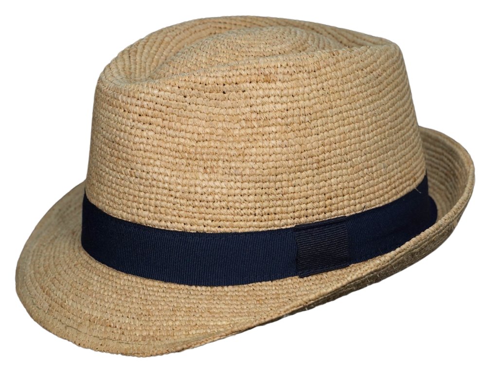 Trilby Raffia - slamený klobúk crochet s modrou stuhou