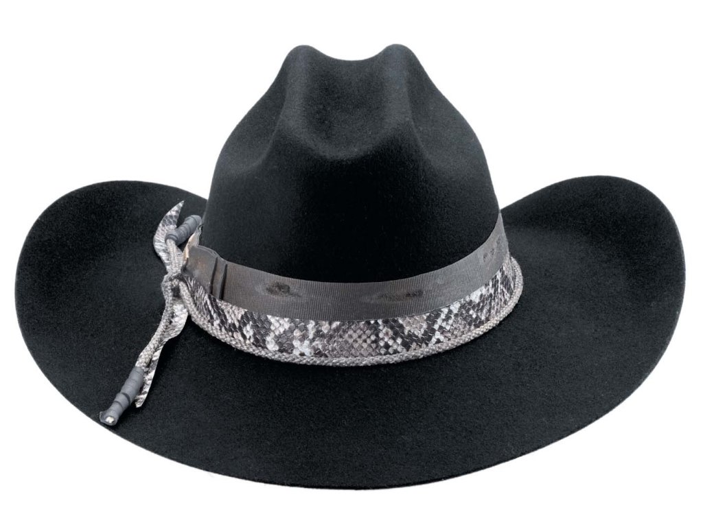 Jeho siluetu tvorí výrazná westernová koruna a široká krempa, ktorá okamžite dodá každému outfitu silu a štýl. A potom prichádza detail, ktorý z neho robí naozaj výnimočný kúsok — ozdobný opasok kombinujúci klasickú stuhu a hadí vzor, ktorý celé prevedenie osvieži a posunie o triedu vyššie. Je to presne ten typ doplnku, ktorý urobí rozdiel medzi obyčajným klobúkom a tým, ktorý si ľudia zapamätajú.